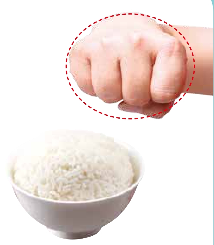 选用相当于自己两个拳头大小的淀粉类食物,如馒头、花卷、米饭等,就可以满足人体一天碳水化合物的需求量了。水果一天的需求量则相当于1个拳头大小。