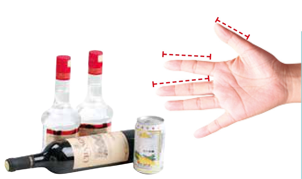 糖尿病患者最好不饮酒,如果实在要喝的话,建议白酒的量以拇指高度为准,红酒的量以食指高度为准,啤酒的量则以中指高度为准。