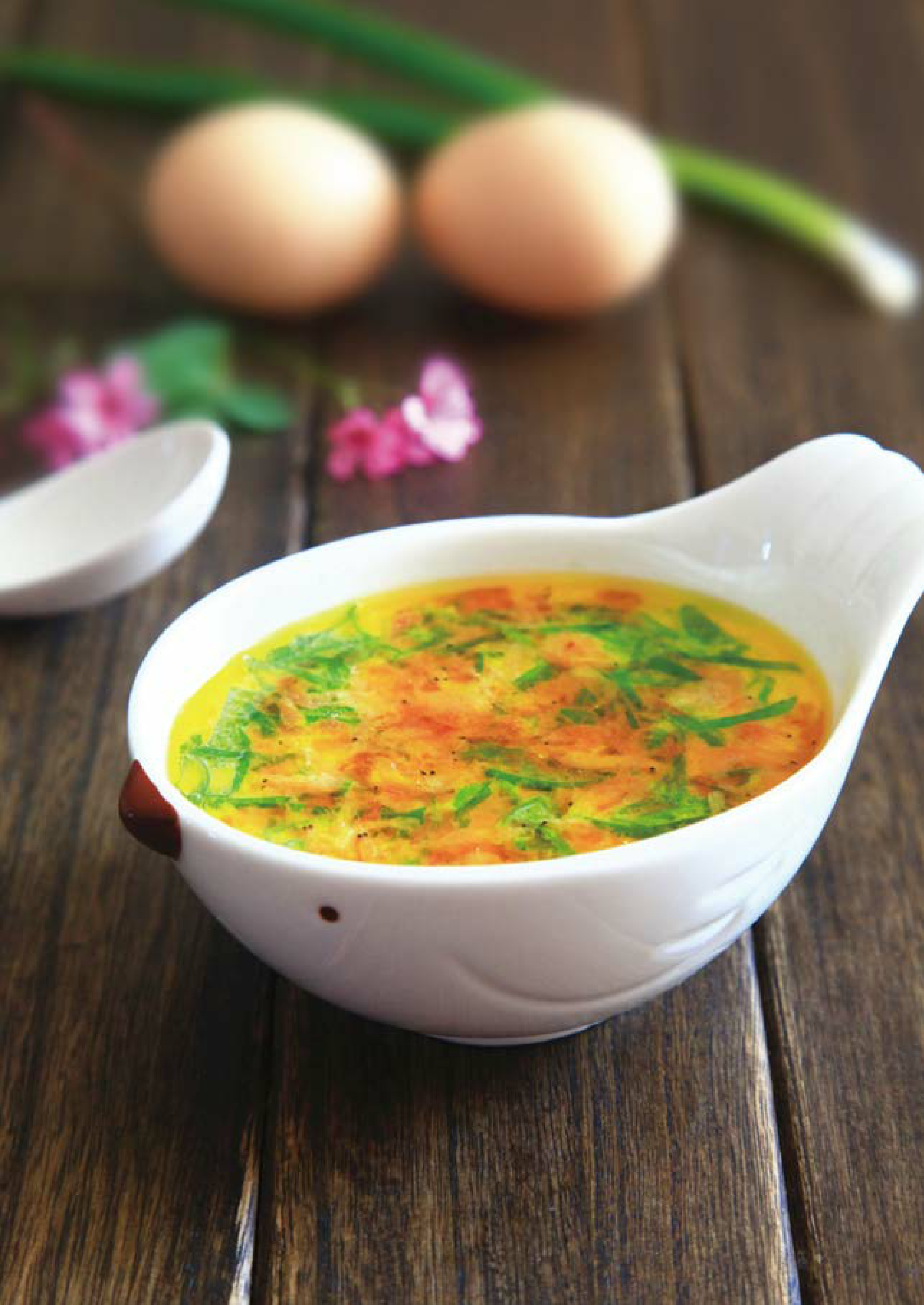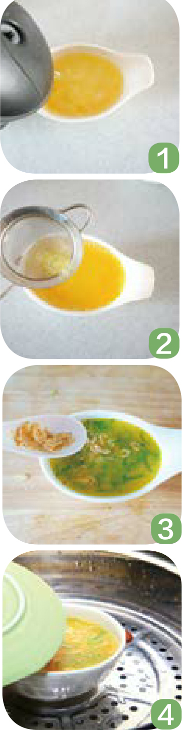 原料: 土鸡蛋2个,小葱、虾皮、温开水各适量。