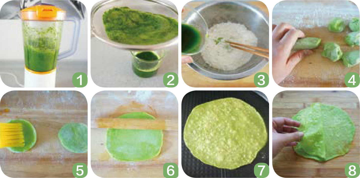 1.菠菜要趁热放入料理机,要保证和面时蔬菜汁的温度在80℃以上,达不到可以用微波炉加热。
