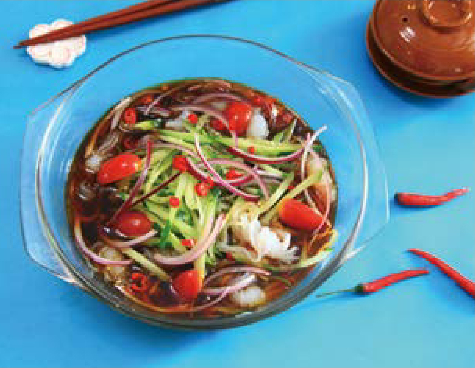 2.所有处理好的原料放入捞汁中,浸泡10分钟就可以上桌了。