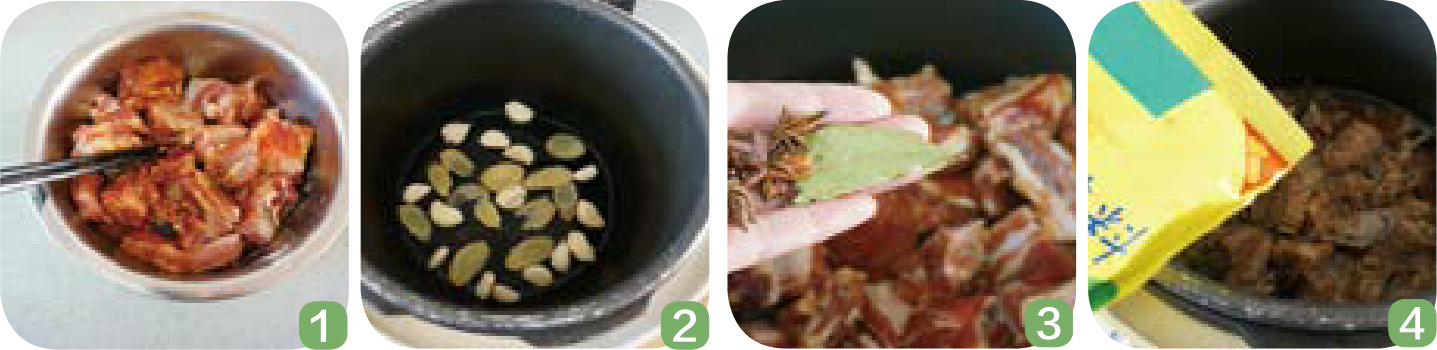 4.高压锅冷却后开盖,放入鸡精,按下煮肉按键开盖收汁,汤汁浓稠后拌匀即可。