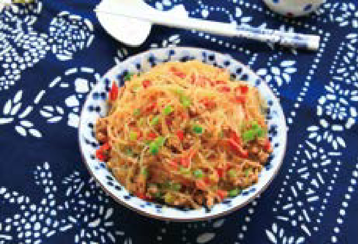 2.焯好的粉丝用植物油拌匀再炒不易粘锅。