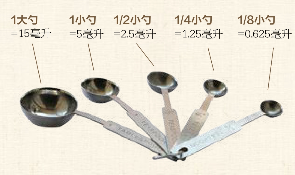 食谱中的食材一般都用克或毫升计量,如果你想按照食谱做出好吃的饭菜,就一定要准备一台精准的厨房秤和一套量勺。