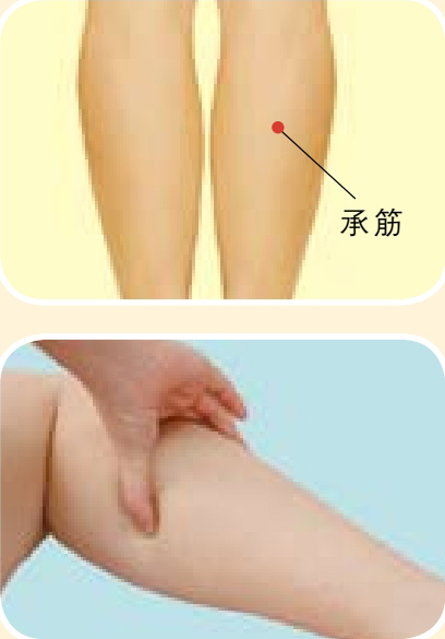 按摩方法 :取坐位,拇指按于承筋穴,按顺时针方向按揉2分钟,由轻到重,以有酸胀感为度。