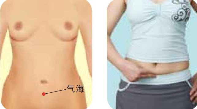 按摩方法 :中指指端放于气海穴,按顺时针方向按揉2分钟,揉至发热时疗效佳。