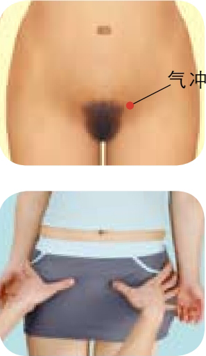 按摩方法 :被按摩者仰卧,按摩者用两手大拇指按顺时针方向按揉气冲穴约2分钟,然后按逆时针方向按揉约2分钟,以局部有酸胀感为佳。