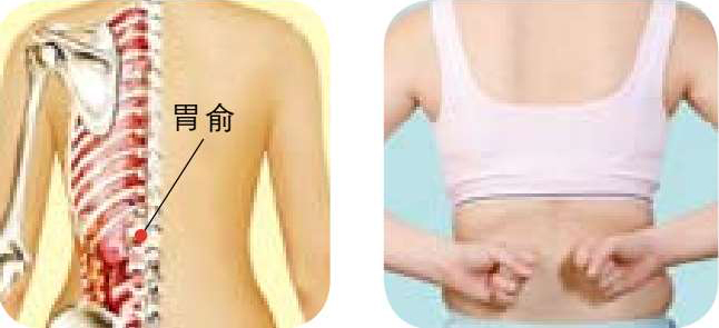 按摩方法 :取坐位或立位,握空拳,揉擦胃俞穴30~50次。