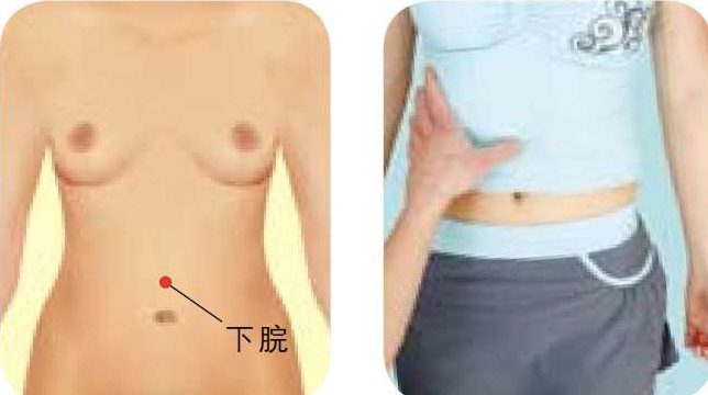 ● 按摩方法 :被按摩者仰卧,按摩者用拇指或中指按压下脘穴约半分钟,然后按顺时针方向按揉约2分钟,以局部感到酸胀为佳。