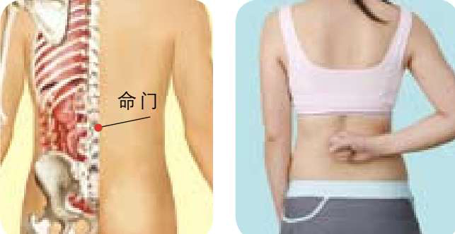 按摩方法 :取坐位或立位,右手握拳按揉命门穴2分钟,然后按逆时针方向按揉2分钟。