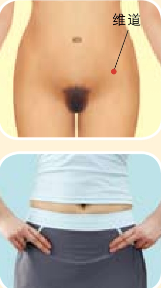 按摩方法 :用食、中二指按于维道穴,按顺时针方向按揉2~3分钟,以有酸胀感为度。