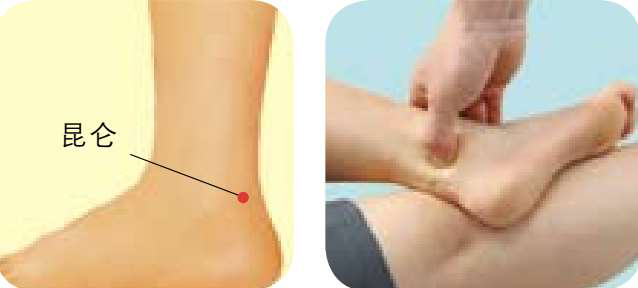 按摩方法 :按摩者用手握住被按摩者的踝部,用拇指指腹自上而下推按昆仑穴2分钟。