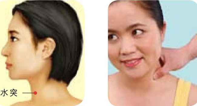 ● 按摩方法 :被按摩者仰卧或坐位,按摩者用双手拇指或中指点按水突穴1分钟,以不感到难受为宜。