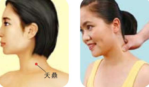 ● 按摩方法 :被按摩者仰卧或坐位,按摩者用双手中指或拇指点按天鼎穴1分钟。