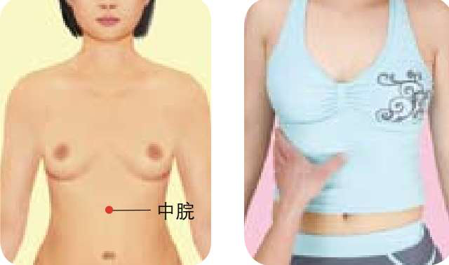 ● 按摩方法 :被按摩者仰卧,按摩者用拇指或中指点按中脘穴半分钟,然后按顺时针方向揉2分钟,以局部有酸胀感为佳。