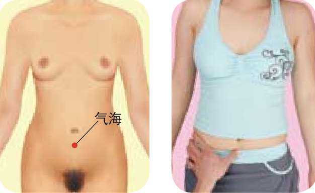 ● 按摩方法 :被按摩者仰卧,按摩者用拇指或中指按顺时针方向按揉气海穴2分钟,然后按逆时针方向按揉2分钟;或用艾条对准气海穴,熏到微微发热、皮肤有红晕为止。