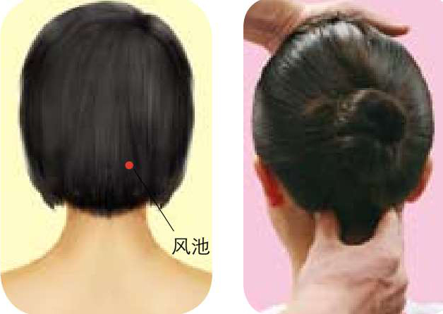 ● 按摩方法 :按摩者一手扶住被按摩者的前额,另一手拇指和食指分别置于风池穴处,揉捏半分钟。