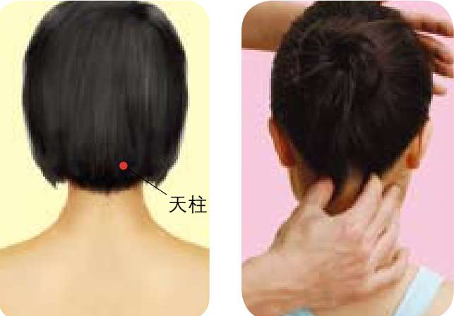 按摩方法 :被按摩者坐位,按摩者坐于其后,拇指、食指同时着力,按压天柱穴约2分钟,以局部有酸胀感为佳。