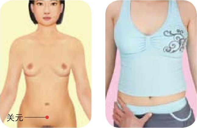 ● 按摩方法 :被按摩者仰卧,按摩者站于一侧,用拇指或中指点按关元穴1分钟,以局部有酸胀感为宜。