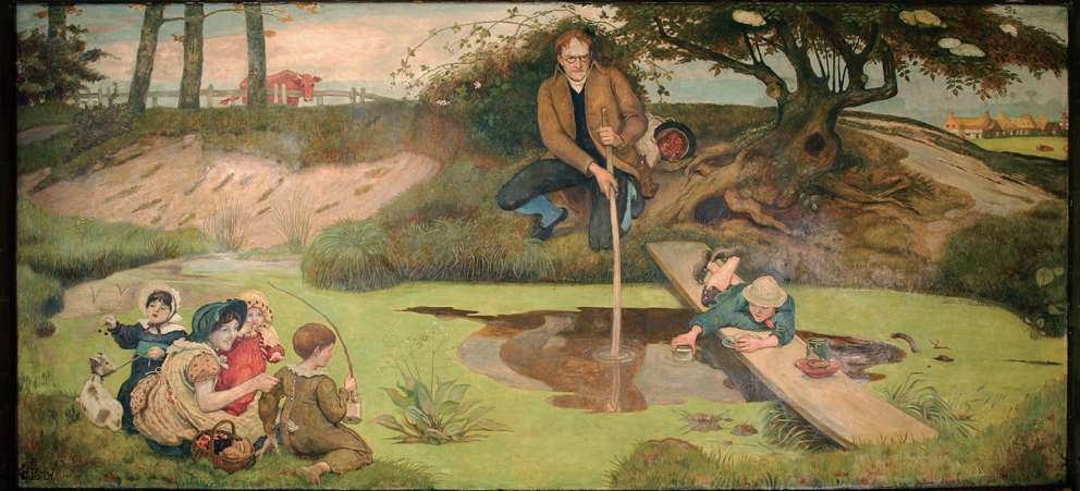 表现道尔顿在沼泽中收集气体的绘画作品Ⓦ