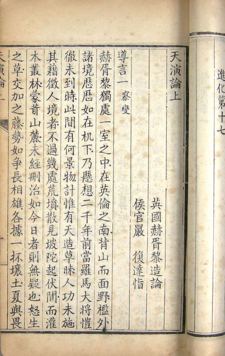 1898年,我国学者严复将赫胥黎的另一著作《进化论与伦理学》的一部分译成《天演论》出版。之后,“物竞天择、适者生存”及“优胜劣汰”等书中文字风行,使得进化论在中国深入人心。如今,在伦敦南肯辛顿博物馆内达尔文的大理石像旁,同样树立着赫胥黎的大理石像,和达尔文一样,他的名字也成为了进化论立足于科学史的一部分。