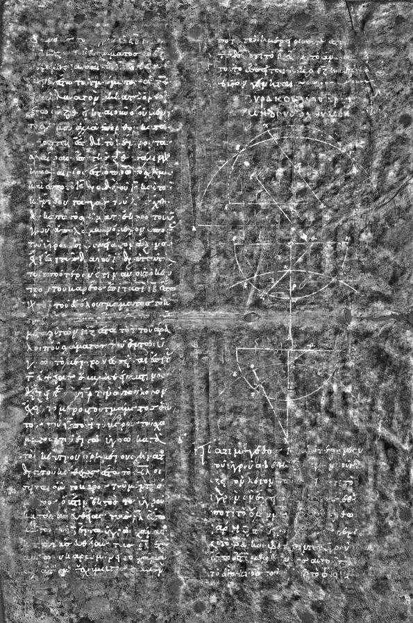 (5)《方法》,阿基米德的这本书直到20世纪初才被发现,其命运颇为坎坷。它最先被人们抄写在羊皮纸上,大概在12世纪末的时候,一名东正教僧侣得到了这部作品,起先是准备将之销毁的,但是所用的羊皮纸在当时是件奢侈品,他舍不得扔掉,于是将上面的文字擦除,写上东正教的祈祷文。幸运的是,原先的文字虽经擦除,但墨水多少渗进了羊皮纸。美国斯坦福大学的科学家采用现代技术手段,用高能X射线将这墨水中的铁原子激发出荧光,才使得阿基米德的这部作品在20世纪初重见天日。
