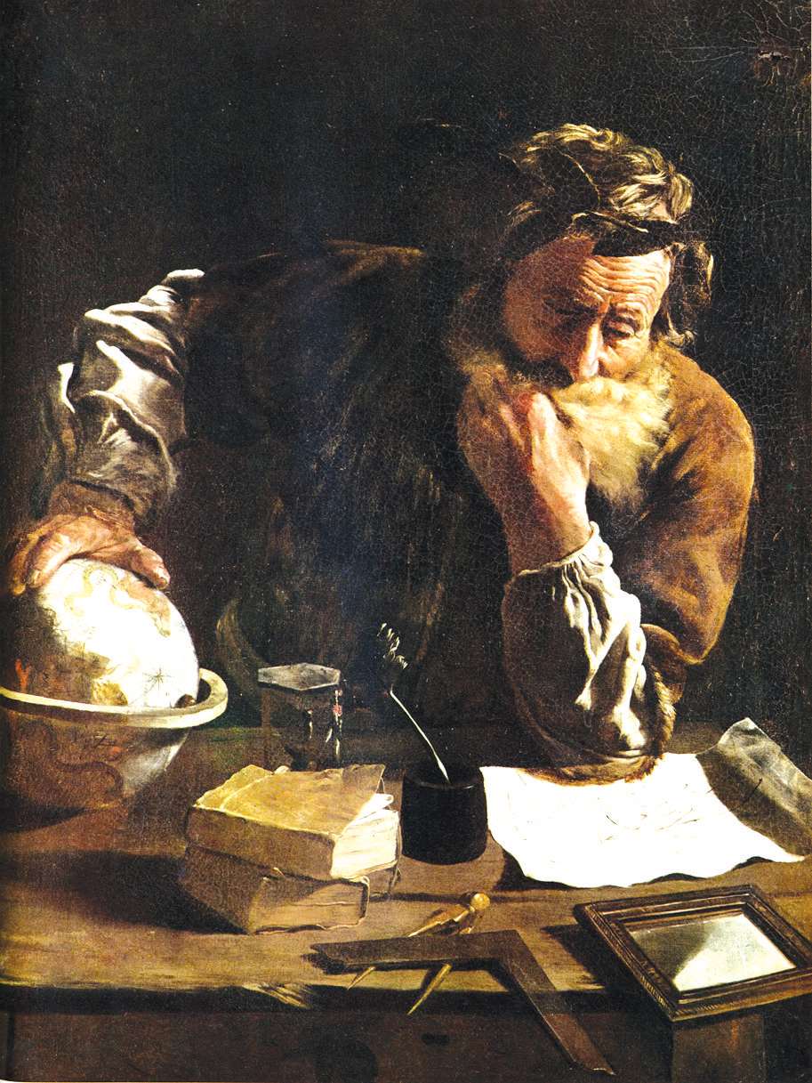 阿基米德生于西西里岛上的叙拉古,曾在亚历山大学过数学、天文学等知识,以善于发明精巧的机械闻名于世,如投石炮,在击退罗马人对叙拉古的围攻中立下大功。然而,比起那些实际发明,他更醉心于纯科学的研究,据说罹难之际还在研究深奥的数学问题。