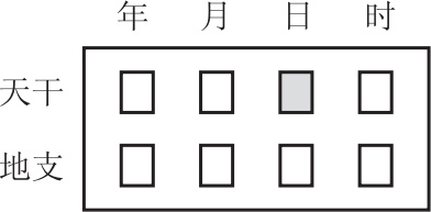 同时,它不再如古法模型从年柱下手,而是以 日干 为重。这样,分析的“契入点”从原来的年柱移到了日柱的天干这一个字上,把它作为整个八字结构的“核心”,然后以此核心来建立一套分析程序。这就形成了不同于古法模型的一种新的分析“模型”。可以图示如下: