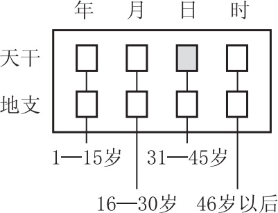 即年柱为出生至十五岁;月柱为十六至三十岁;日柱为三十一至四十五岁,四十五岁以后的时间就归于时柱了。因为月柱正好处于人生发展的重要阶段,所以月令也是人生发展的重要枢纽。