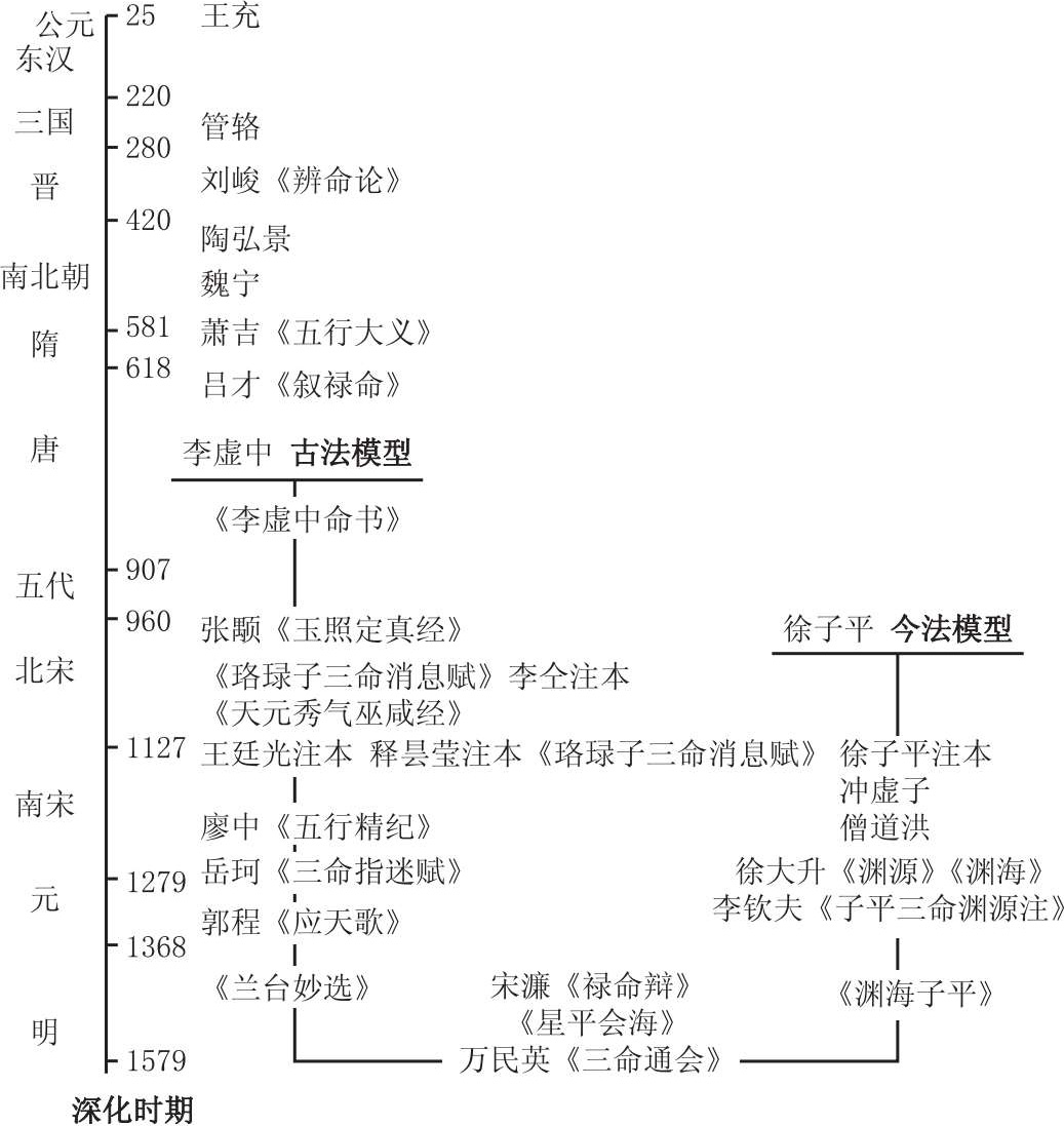 本章对命理学形成时期的重要人物和主要著作概述的脉络,可以图示如下: