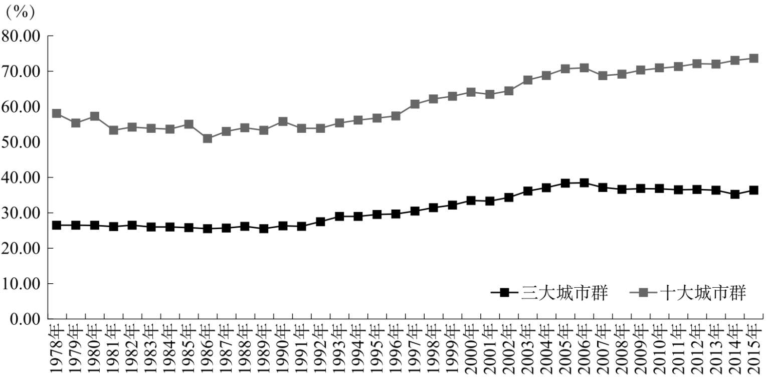 图2-1 1978—2015年中国主要城市群经济比重