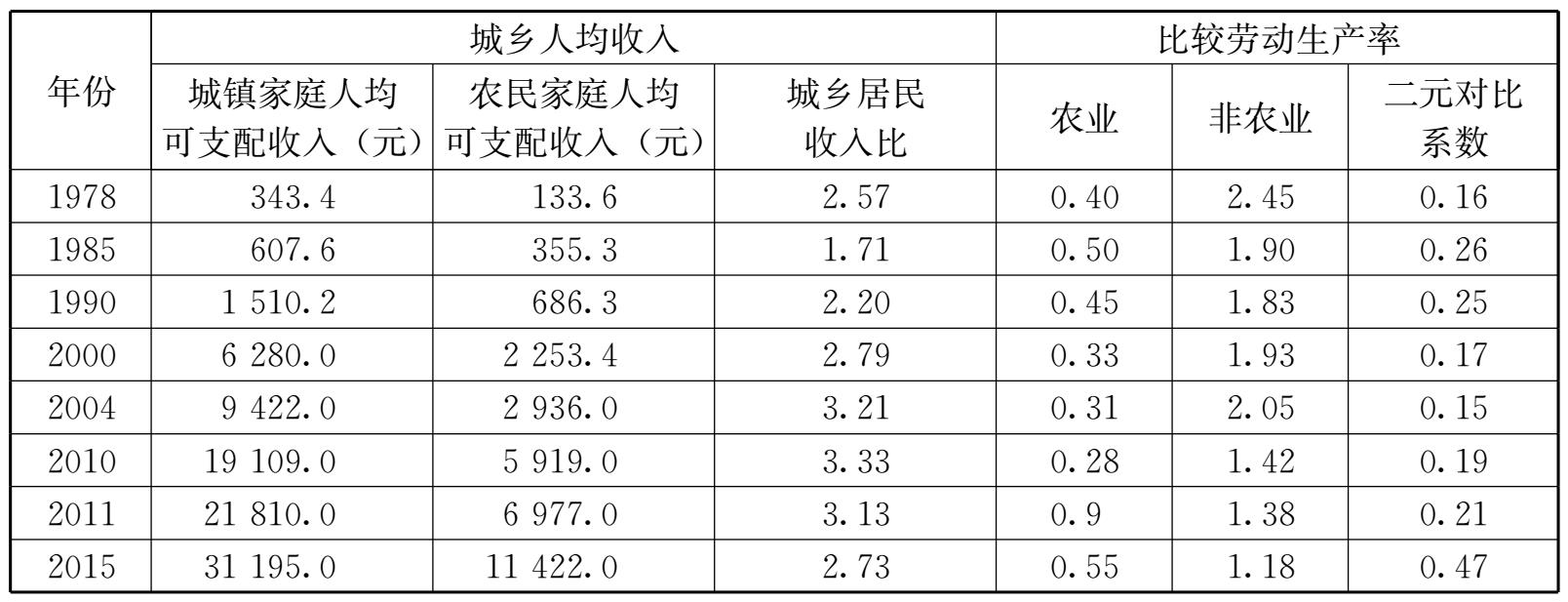 表2-8 我国城乡居民收入与劳动生产率对比