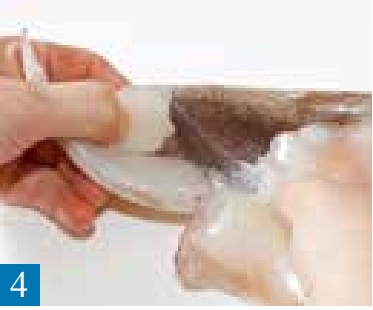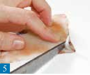 清除所有黑色的鱼鳞。翻面后重复相同动作,直到看见白色部分。