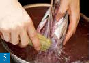 因青花鱼肉质柔软,不能用竹刷清洗,改用筷子或手轻轻洗净。