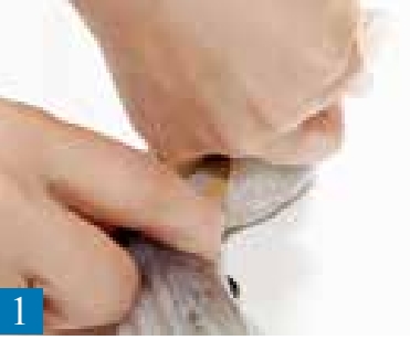 用手指勾住中骨拉出,再用鱼骨夹去掉细骨。