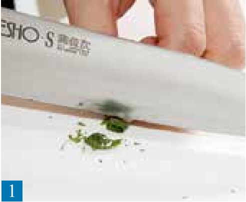 青紫苏很难切薄片,卷成小筒比较好切。切的时候尽量切碎一点。