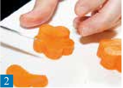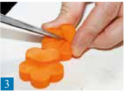 胡萝卜切成约1cm厚的圆片,用模具压出花朵形状。