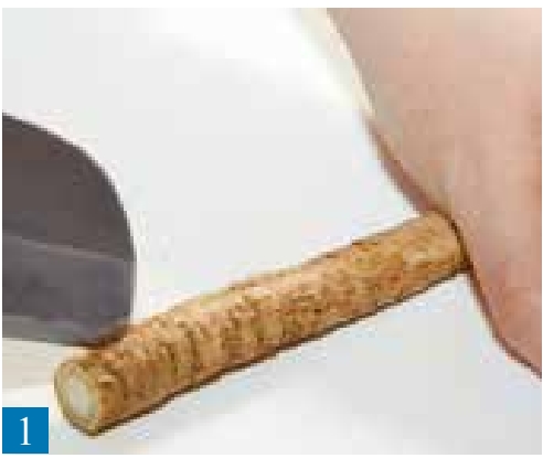 用刷子清洗牛蒡,在表面竖着划几刀。