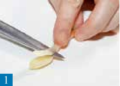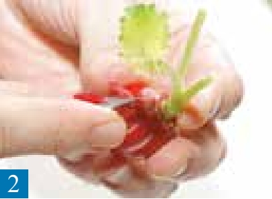 将用甜醋渍生姜的前端切成毛笔形状。因为要求动作很细腻,不习惯的话可以使用水果刀。