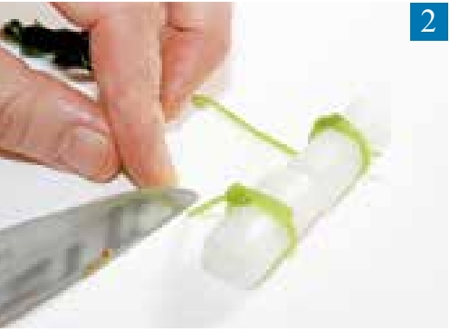 最后拉紧,以免蔬菜散开。如果长度不一,可切掉前端太长的部分。