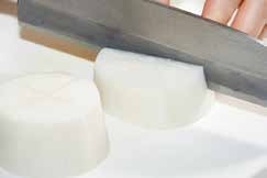 切成圆片的白萝卜,其中¾削成长长的薄片,边缘可呈波浪纹。