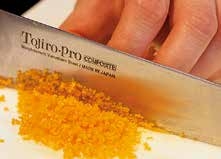 将切丝的蔬菜拢起来切碎,颗粒比较粗的,称为切粗末。