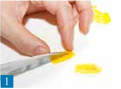 在柚子皮上划刀,折成松叶的形状,也叫做松叶切折。鲜艳的黄色,可以搭配任何料理。