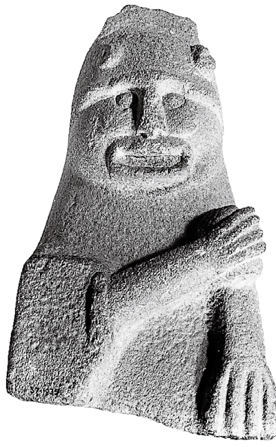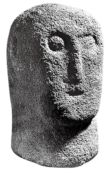 前基督教时代爱尔兰和威尔士的这些石刻雕像可能代表着正在行使其职能的讲故事者。这些雕像刻画了人类的头像,其中很多人像的嘴巴大张,像是正在讲话或唱歌。其中一个很独特的雕像出土于爱尔兰阿尔玛赫郡纽里市,被人们称作“坦德里吉偶像”。雕像塑造的是一个正在讲话的人的形象,他长着厚厚嘴唇的嘴巴大张着,而且似乎戴着一顶饰有牛角的头饰;右臂横在胸前,呈演说者的典型姿势,而手中抓握的可能是某种有魔法力量的石头。一种很有吸引力的解释是,将其视为某种先知或萨满,佩戴的动物徽记指向他可能具有的变形能力,可以与诸神交流,从而在其社群中散播来自神灵的智慧。传统上,萨满经常使用动物的形象,因为他们被认为与异世界存在紧密的联系。因此萨满就经常穿戴用兽皮制成的斗篷或牛角。我们并不能精确地判定坦德里吉偶像的年代,但它很可能是铁器时代末期或中世纪早期的作品。