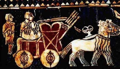 与其他两个族群相比,雅利安人特别值得一提。他们来自地图上纬度较高的地区,首先学会了驯服野马用于拉车、骑行,还驯服了野牛用于产奶,也驯服了野羊,用剪下来的羊毛做衣服。