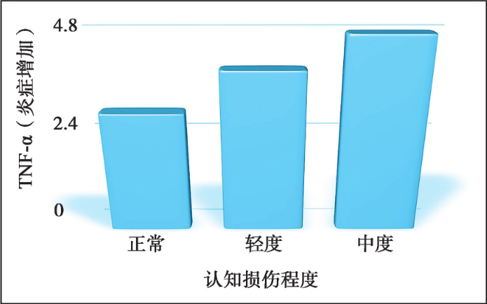 不论是大脑还是身体其他部位,与炎症相关的生化物质都有很多。在阿尔茨海默病患者中,能够指示炎症发生的生化物质(即炎症因子)水平增高,甚至能用于预测认知能力衰退和痴呆症发生。这些生化物质中最著名的就是细胞因子,这是一类由细胞释放并影响其他细胞行为的小蛋白,它通常是发炎过程中的重要参与者。C反应蛋白、白细胞介素6(IL-6)和肿瘤坏死因子(TNF-)都是细胞因子。我们现在已经能够观察到这些炎症化学物质在大脑中发挥作用的图像,所以才能鉴别炎症程度与认知损伤程度的直接关联(见图2-1)。