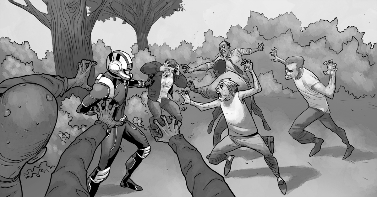 “Don't let them bite you!” warned Ant-Man, trying to push the undead off him. “You'll get infected, too.”