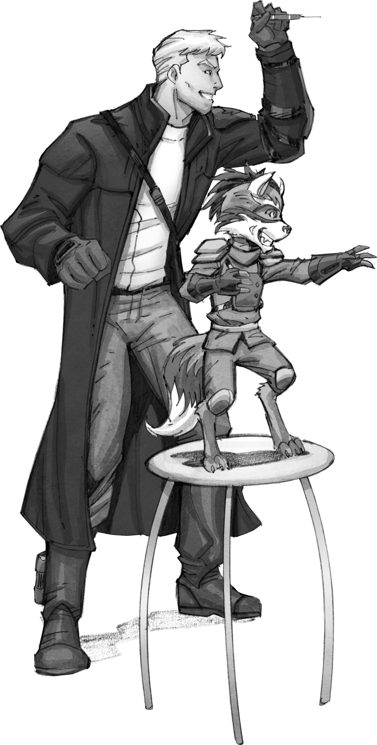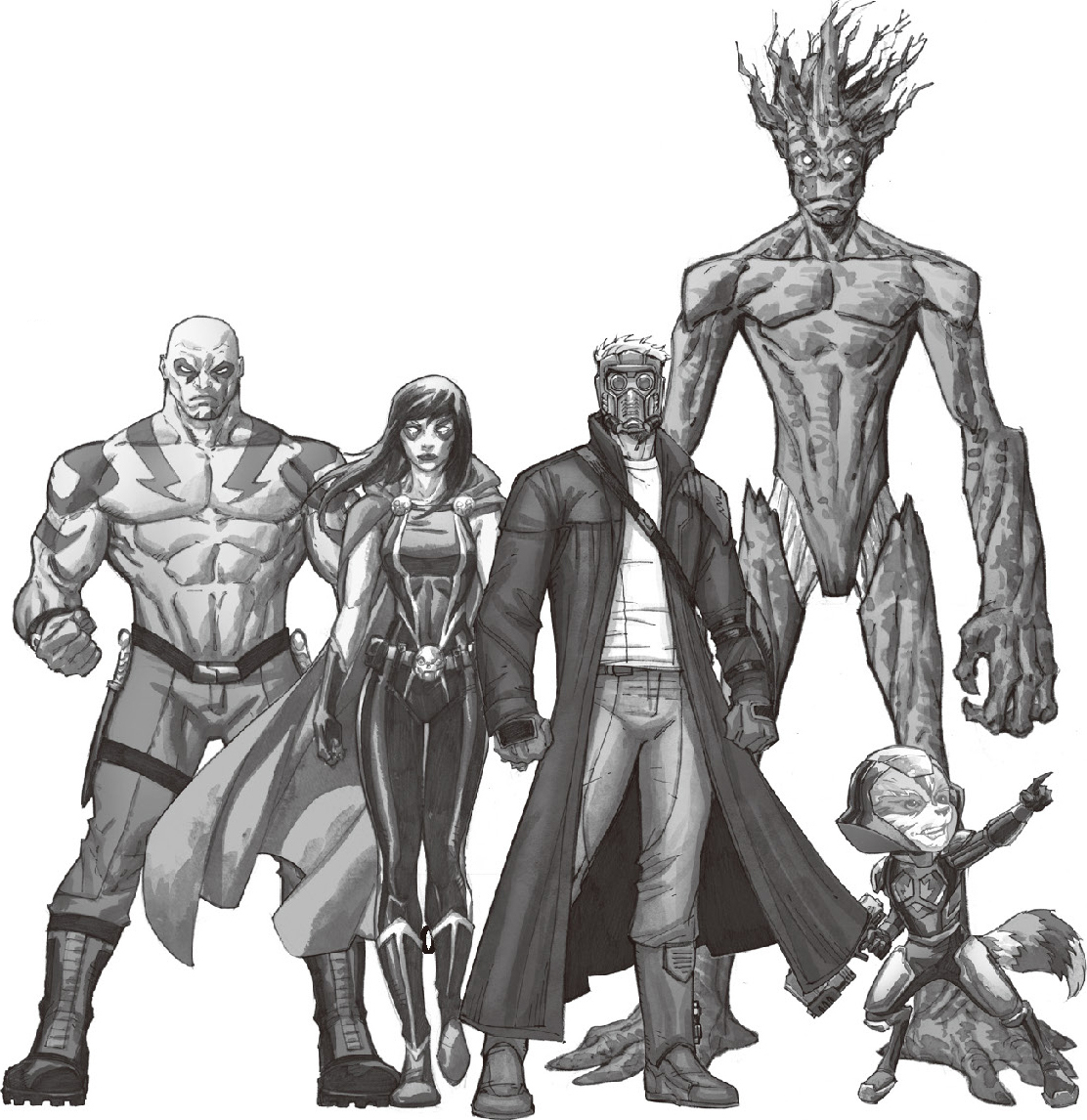 There were four other members of the team: Drax, the green-skinned, alien strongman; Groot, a living tree monster from space; Rocket, a furry little weapons specialist who looked almost exactly like a large Earth raccoon; and Gamora, an intergalactic warrior trained in several dozen forms of combat. And, of course, there was the leader of the group, Star-Lord.