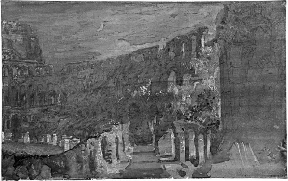 图1 J.M.W.透纳,《月光下的罗马竞技场》(1819)。浪漫主义作