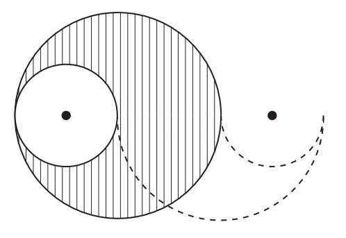 分析 如图所示,解题时可以先将图形下半部分翻转拼接,然后将图中的小圆移至中心。从图中不难看出,求原图中阴影部分的面积就是求一个圆环的面积。